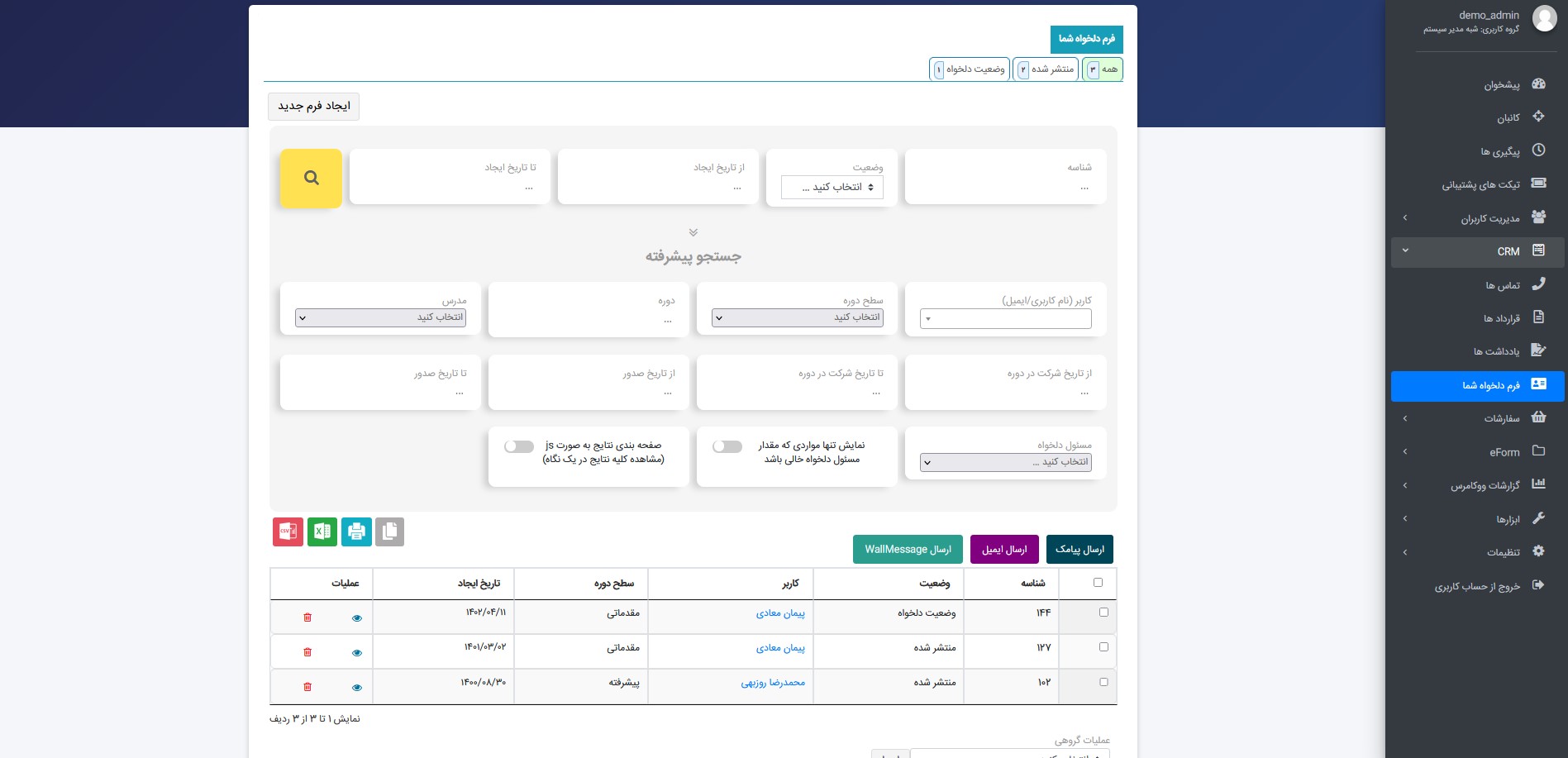 یا یک کلیک فرم های دلخواه را مثل یادداشت ها، ثبت تماس و .. را به سیستم اضافه کنید