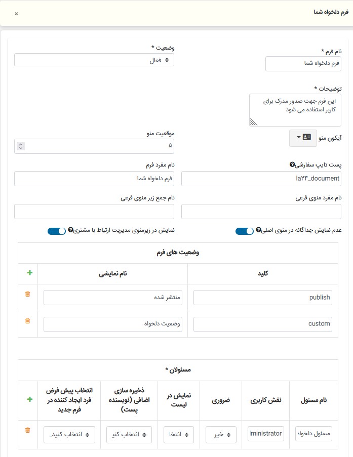 ایجاد مسئولان مختلف برای فرم و اعمال سطوح دسترسی مختلف برای هر نقش كاربری
