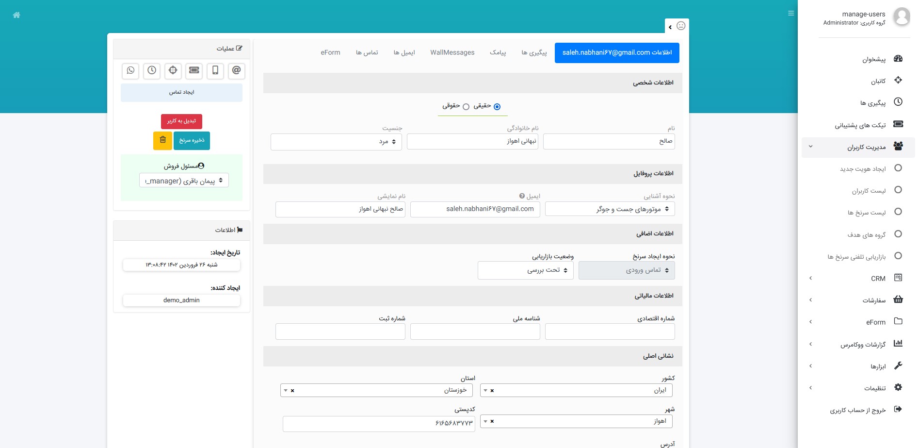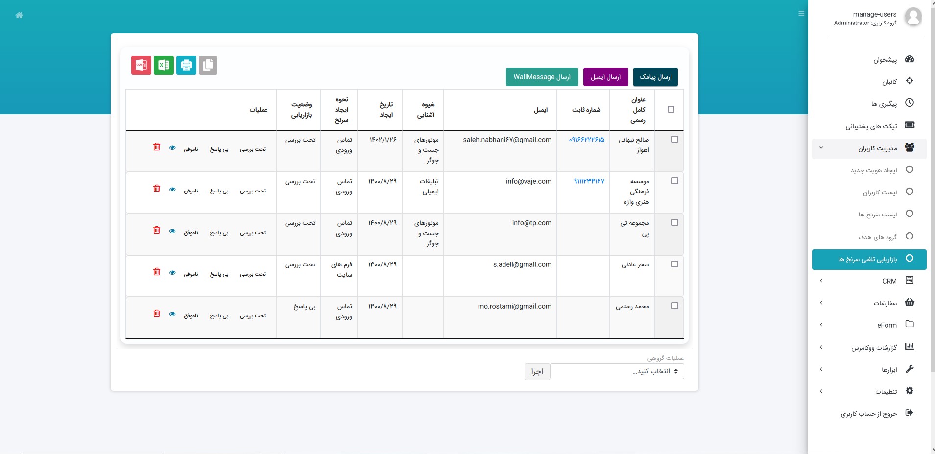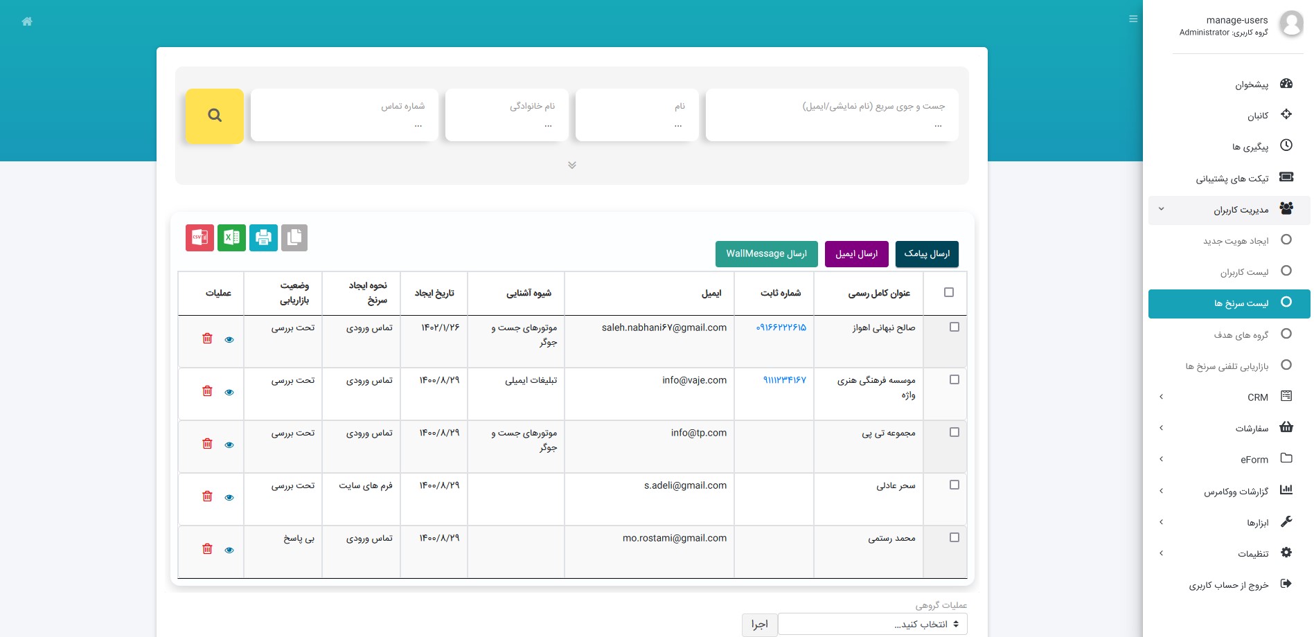 اعمال مجوزهای دسترسی برای پرسنل سیستم جهت دسترسی به اطلاعات سرنخ و مشتری
